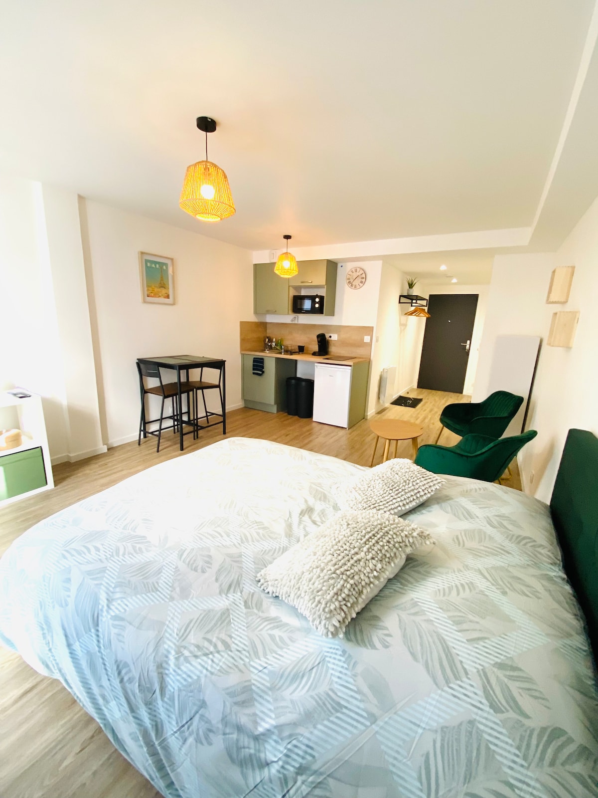 享受這間現代化且友好的單間公寓,位於市中心的高級住宅區,靠近港口的酒吧和餐廳。 您將享受一間客廳、一張舒適的床、一間設備齊全的廚房和一間舒適的浴室。 這套單間公寓很迷人,並且尊重其環境。這是您短期或長期住宿的理想場所。 您將距離電車站僅幾步之遙,讓您可以探索這座歷史悠久的城市或您的工作。