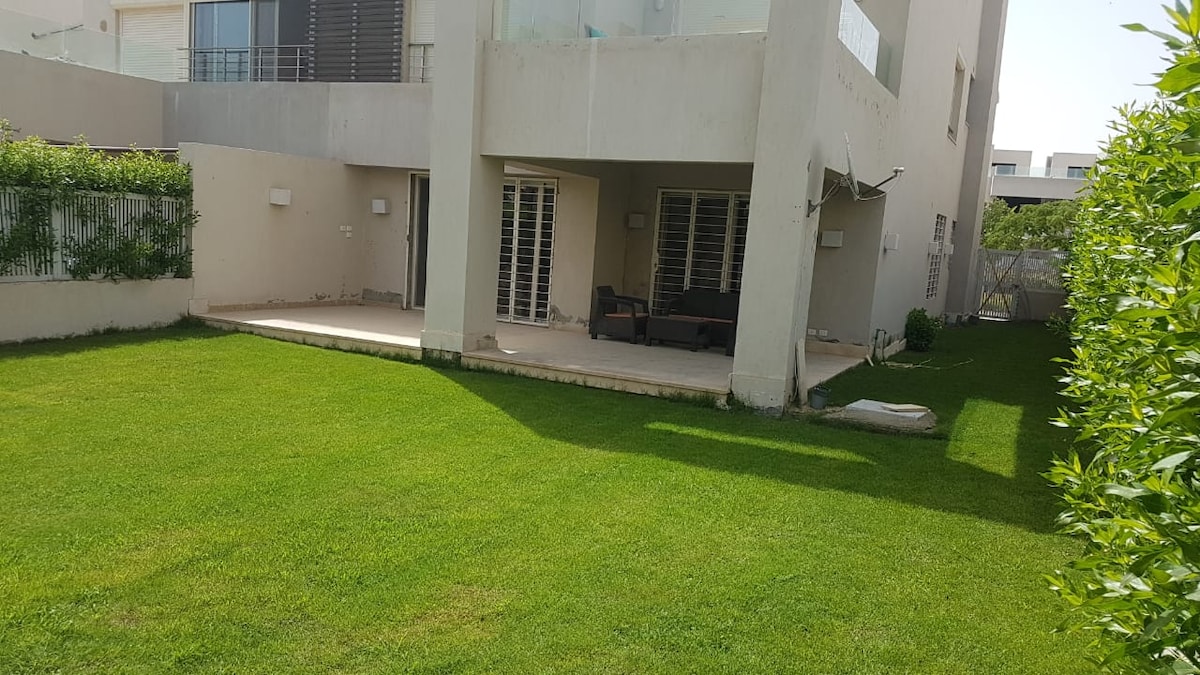 在新開羅享受寬敞的單間公寓,配有舒適的標準雙人床、沙發床和設有戶外座位的私人花園。 單間公寓設有設備精良的廚房,配有爐子、烤箱、微波爐、冰箱、洗衣機、飲水機和水壺。 您還會找到現代化的浴室、快速Wi-Fi、電視和空調,讓您住得舒適。 位於安靜安全的街區,靠近商店和咖啡廳。 注意:不允許混合性別入住(除非已婚)、不允許飲酒/吸毒,也不允許訪客或活動。
