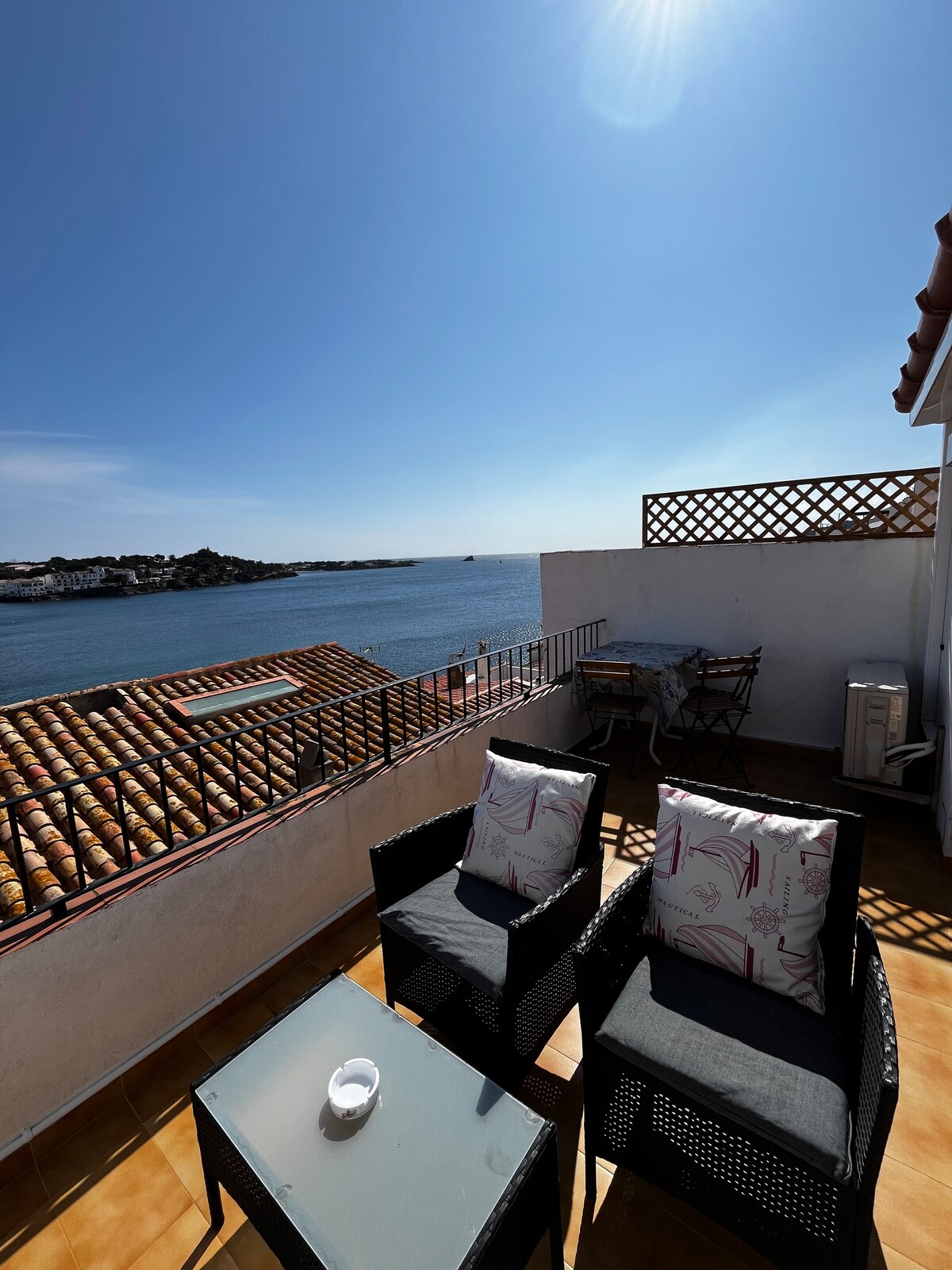 Àtic amb vistes al mar, a 50 metres de la platja. Per a 2 persones com a màxim. WIFI Gratis. Televisió Smart TV 1 habitació amb llit doble 1 bany Cuina americana, equipada. Terrassa amb vistes al mar i al poble. Aire condicionat a la sala i a l'habitació Rentadora. Equipat amb tovalloles de bany i llençols. Cancel·lació flexible. Parking de pagament de l’entrada del poble a 300 metres, fora de temporada alta es recomana aparcar per el carrer Solitari o per la zona de la platja del llané