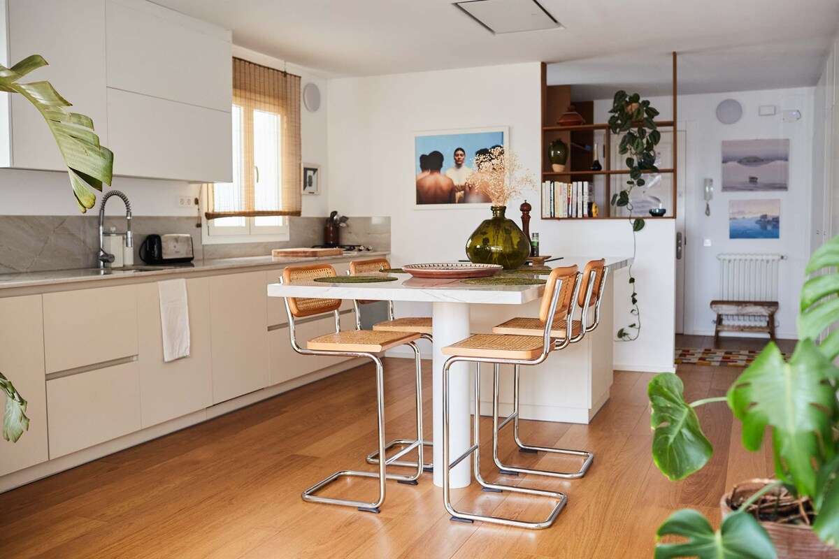這套公寓是大廚 Marc Vidal 的家。 它已全新翻新,以滿足他的需求,在開放式空間內擁有大型廚房櫃檯,配有精心挑選的藝術品和家具,使其成為一個溫馨暖的家。 它超級明亮,有一個美妙的露臺,非常適合坐在外面吃飯和閒逛,可欣賞山景和海景。 距離聖家堂(Sagrada Familia)教堂僅幾個街區,這是一個美麗而正宗的巴塞隆納街區。 23年6月的照片