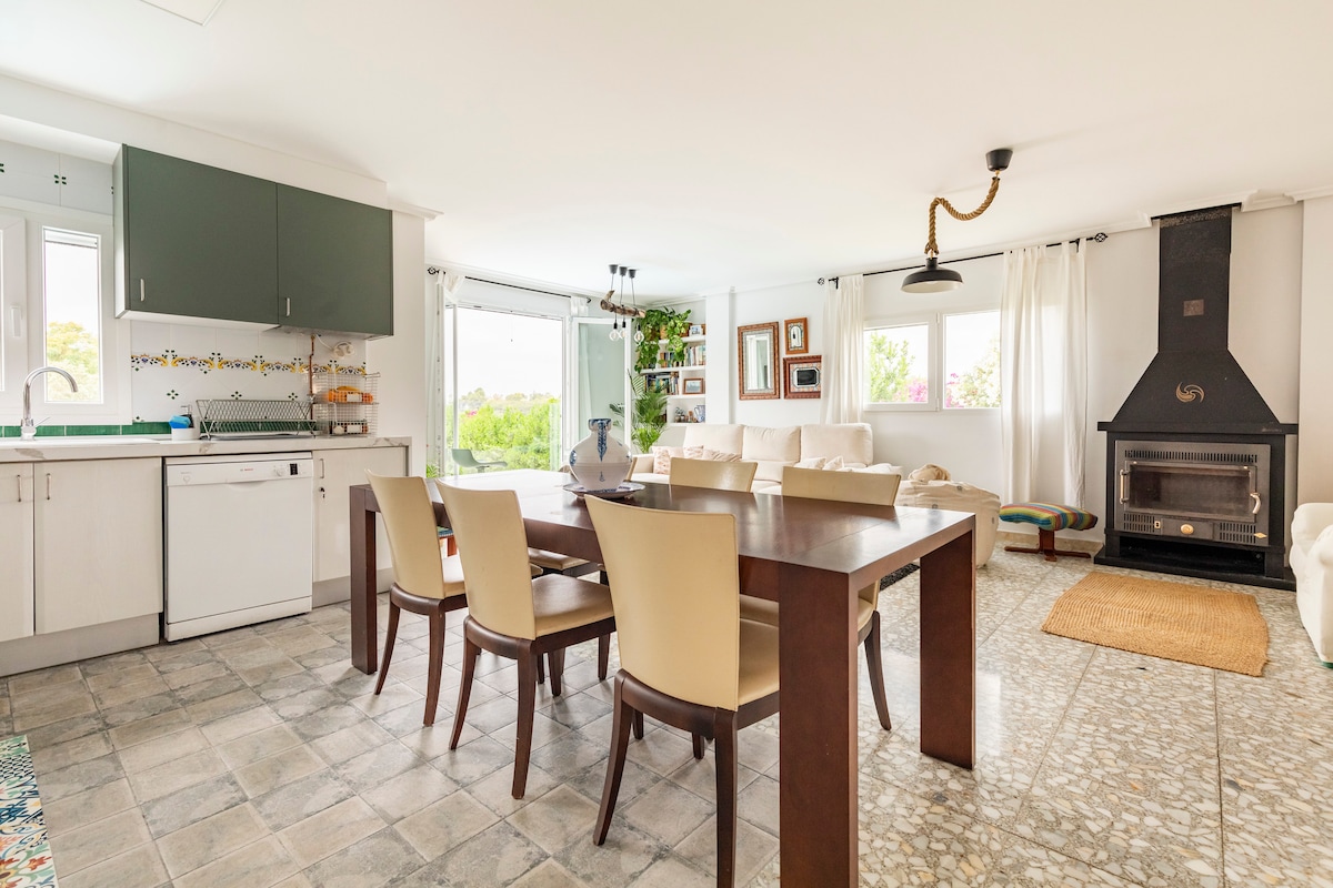 在這裡,您可以呼吸到寧靜的空氣:與全家人一起放鬆! 獨立別墅位於Torrent,距離瓦倫西亞25分鐘,地處安靜區域。 配有優雅的花園、烤肉區、游泳池和日光浴區。 一樓有3間臥室(1間雙人床、1間雙人床+ 1間雙層床、設備齊全的廚房、浴室、帶壁爐的餐廳 以及俯瞰花園的露台 一樓閣樓,擁有開放空間,配有雙人床、浴室和露臺