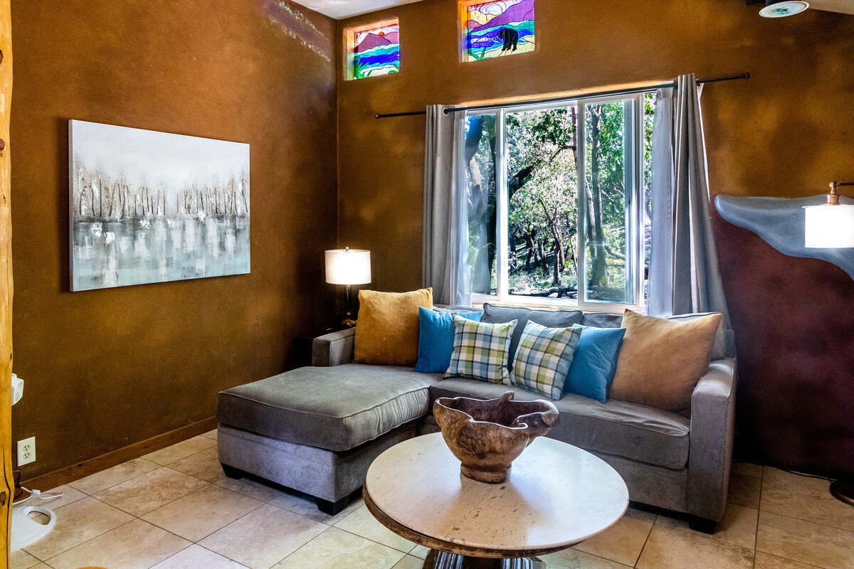 歡迎來到 The Hideaway,這是一個為創意人士、音樂家和尋求靜靜靈感的人而設計的沙漠度假勝地。 這間開放式概念單間公寓坐落在250多英畝的沙漠上,配有高天花板下的自訂表演舞台、豪華設施和水療式淋浴。 打開捲簾門,即可通往寬敞的露臺、火坑、燒烤和吊床,可欣賞無盡的山景和星空。 The Hideaway有可收藏的樂器和呼吸空間,是創意工作室和沙漠聖地的一部分。