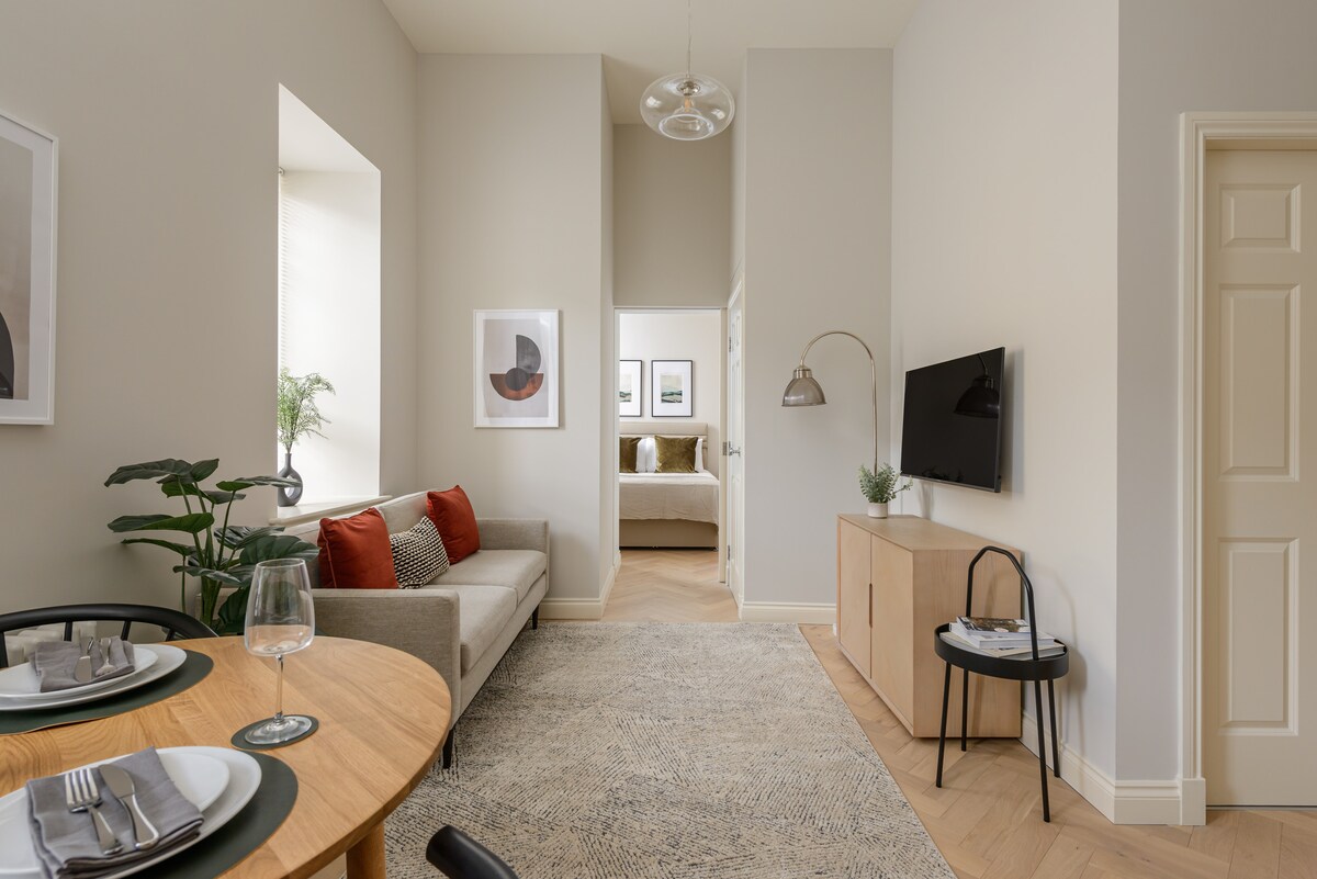 這間新翻修的單間公寓是博物館公寓的一部分,這是一系列現代化和寬敞的北歐風格公寓,位於國家博物館對面,步行不到5分鐘即可抵達著名的Grassmarket和Royal Mile。 公寓配有最高標準的家具和設備,配有極其舒適的雙人床、智慧電視、配有洗碗機的廚房和配有地暖的浴室。