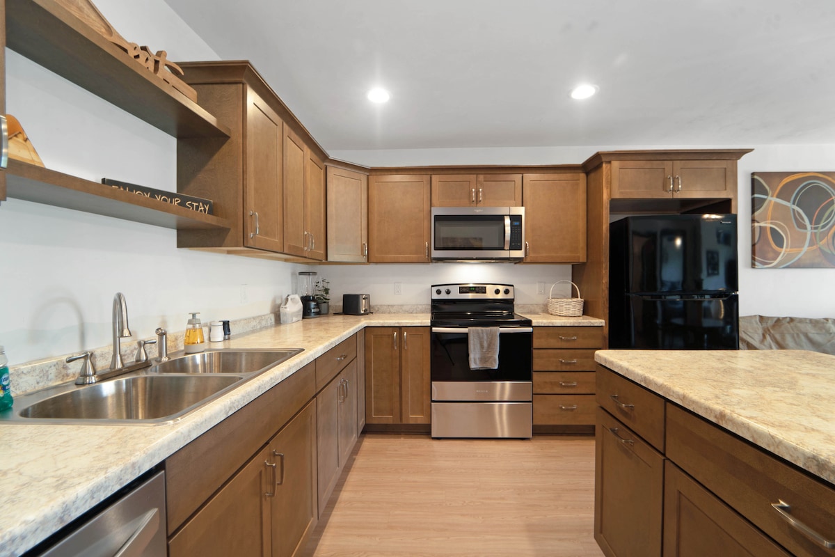 快來享受新建的連棟房屋,家具齊全,方便入住! 位於布里利恩,是馬尼托瓦克、格林灣和阿普爾頓的中心(距離每個約25分鐘,距離蘭博球場約40分鐘!)。 享受許多設備與服務,如區域地暖、壁式空調、零入口(無台階)、附帶2輛車車庫、露臺、公園景觀(彼得公園)、開放式概念與全套大廚房、餐廳和客廳。 雙入口全套浴室、室內洗衣機和烘乾機。 距離Ariens Nordic Center及其他場地僅幾分鐘路程。