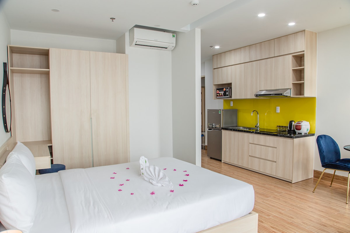 現代而優雅的Altara Suites是峴港的一間豪華公寓,將當代室內設計與風景如畫的環境完美融合。 薩爾瓦多·佩雷斯·阿羅約( Salvador Perez Arroyo )的後現代設計。 -峴港的最佳位置。 -高樓層公寓(25) -步行1分鐘即可抵達美溪海灘( My Khe Beach ) -免費漂亮的泳池。 -臥室和客廳的陽臺。 -全套廚房 - 5星級臥室和廁所 -加大雙人牀。 -所有空間都有空調。 -自助入住。