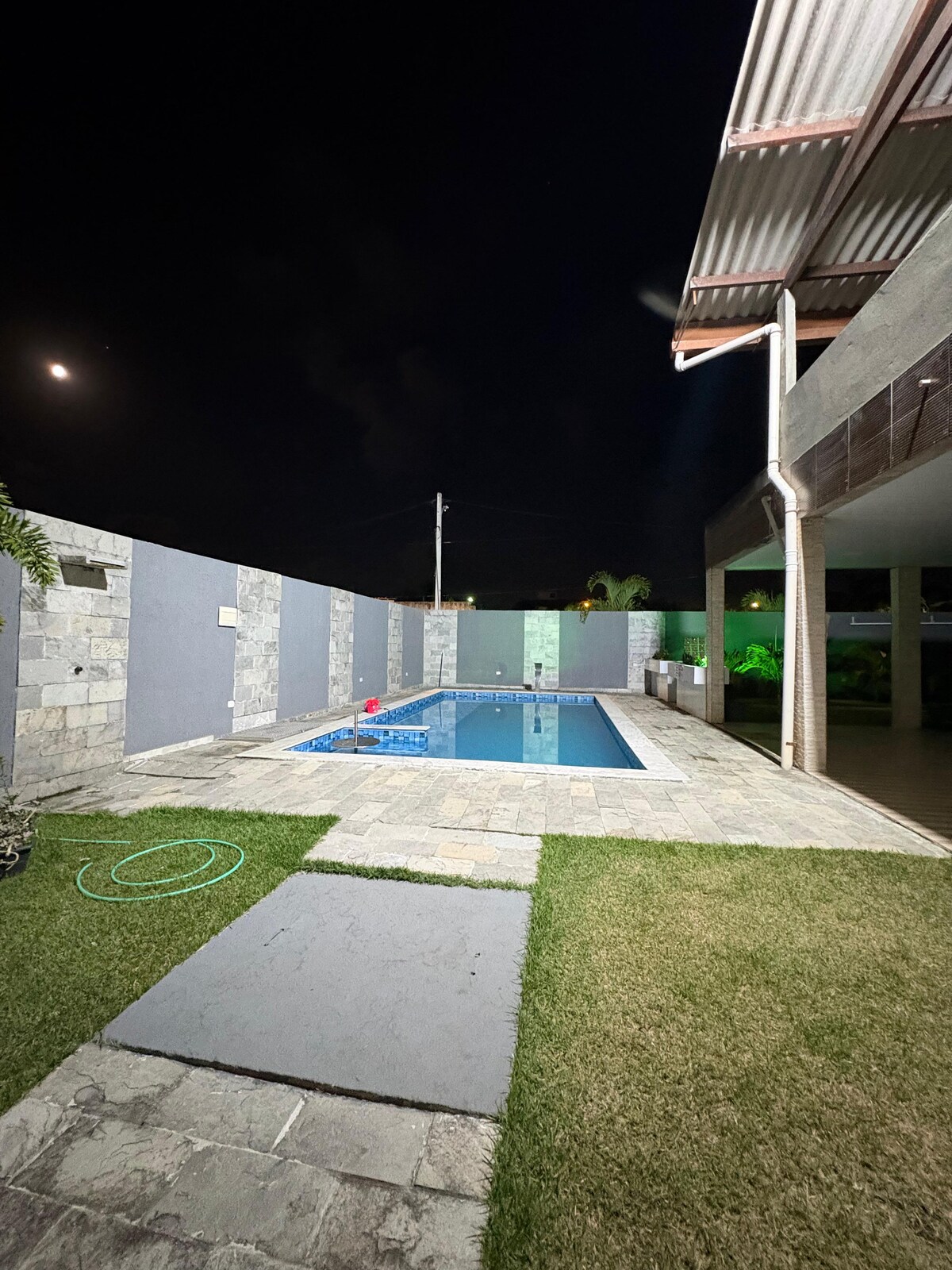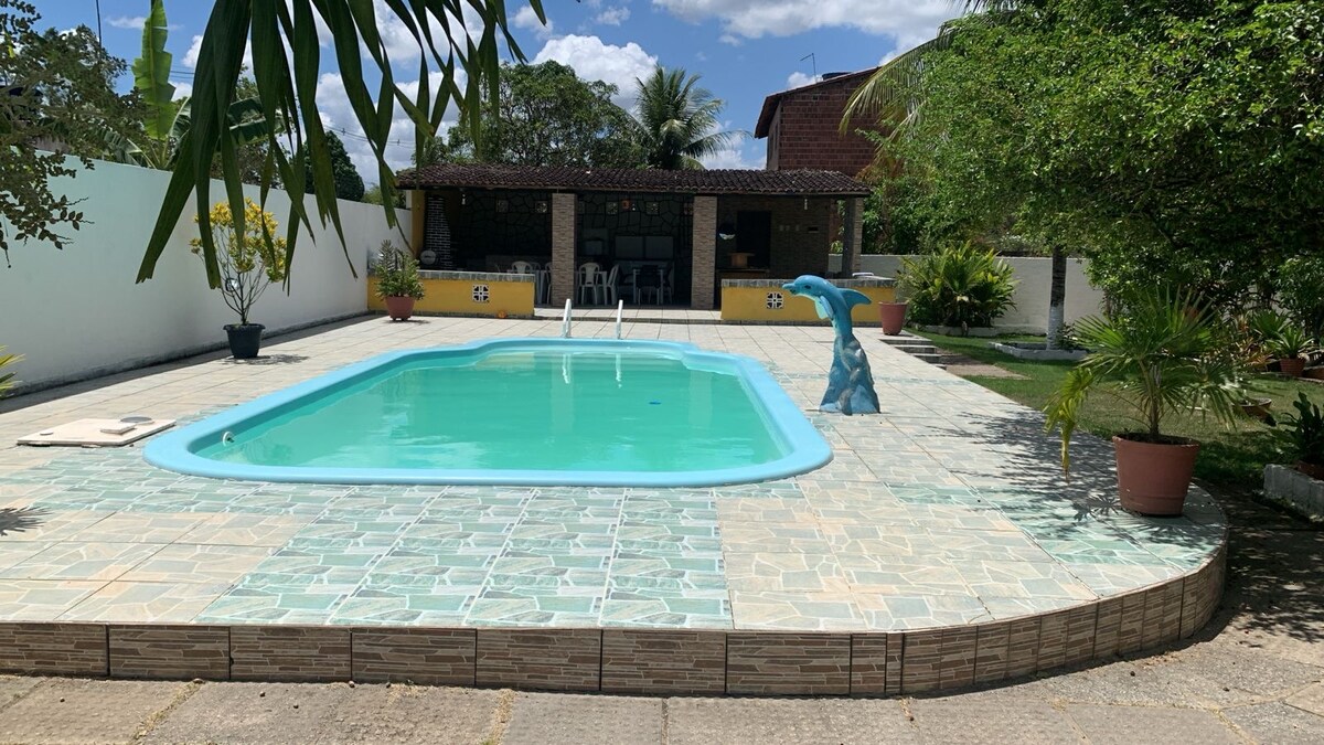 São 2 casas em 1.500 MT. com um total de 6 quartos c/ 3 suítes, sendo 2 quartos com ar condicionado e os demais com ventilador, 10 camas (5 cas/ 5 sol), várias redes na varanda, área verde com fruteiras, espaço para estacionar 15 carros, área gourmet com churrasqueira e alpende arejado, grama com rede de vôlei, 2 piscinas e muita privacidade, ideal para curtir com a família e amigos. Venha se surpreender com um espaço confortável e aconchegante, que vai te deixar com o gostinho de "quero mais".