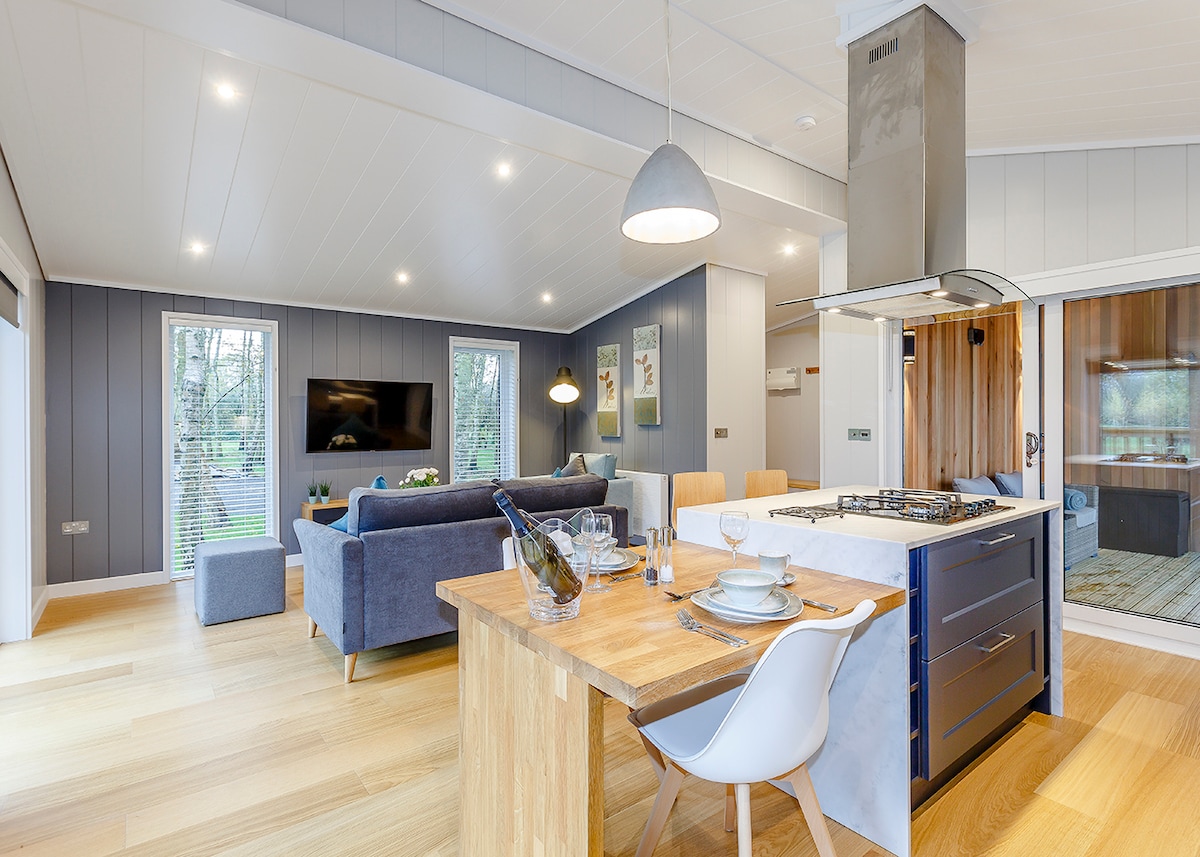 Relax and indulge in the next level of luxury in this uber stylish lodge with one king-size double with en suite freestanding bath and large walk-in shower.