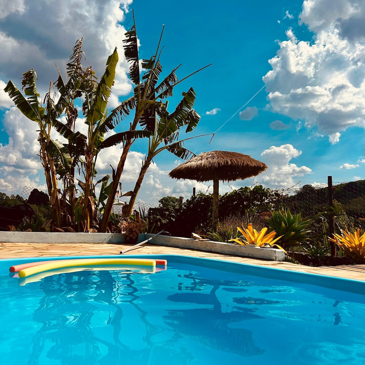 在南米納斯吉拉斯州坎布基拉的這座美麗的鄉村別墅中與您的家人一起放鬆身心,該別墅位於馬林貝羅住宅區,距離市中心僅5分鐘車程。如果您正在尋找寧靜和美麗的景觀,這是理想的地方。享受日光浴,在泳池中放鬆身心。我們還有撞球桌供您娛樂。日落通常是一場壯觀的景象,晚上坐在戶外地面壁爐旁邊,不要錯過該地區令人驚嘆的星空。