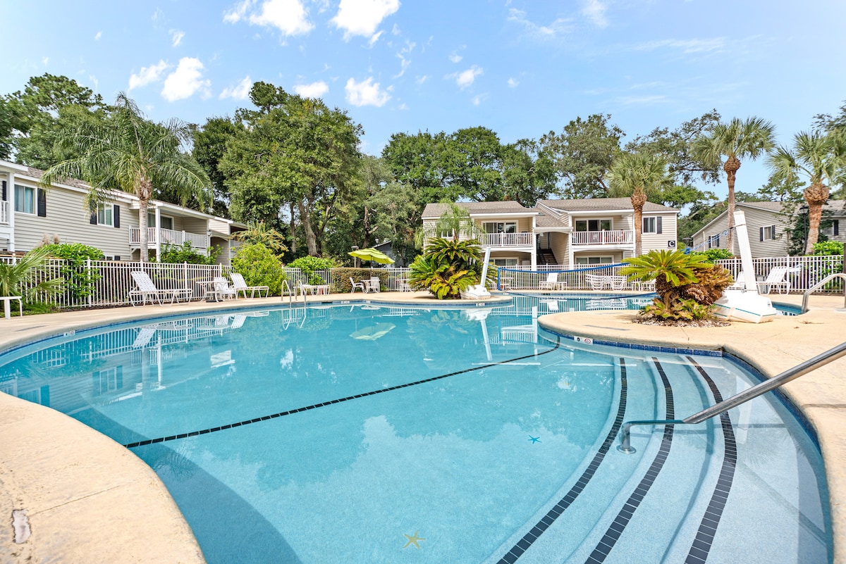 一樓單位~位置極佳(中/南島)~步行即可抵達Redfern Village (許多商店和餐廳)、Southern Soul、Chickfila、星巴克等~開車即可抵達海灘和碼頭~新裝修~有門禁的家庭社區~可靠的WiFi ~客廳有電視和沙發~主臥室有加大雙人床和電視~備用臥室有標準•雙人床和電視~日光浴室有雙人沙發床~泳池和網球場~禁止寵物或動物入住,請參閱高額寵物費規則。 * *停車位--我的屋主協會不允許工作/商用車輛* *