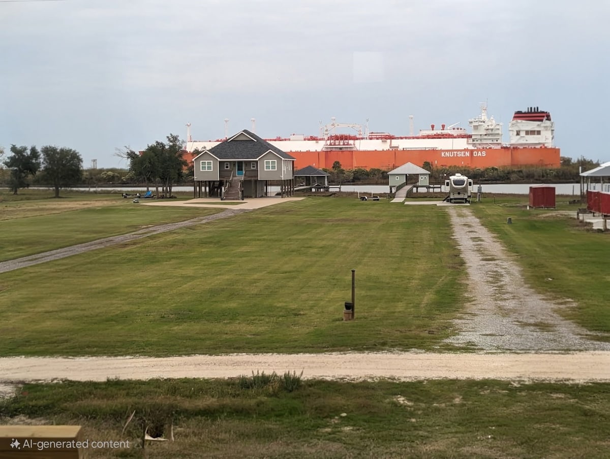 Located 5 minutes from Gulf of Mexico beaches, 2 miles to boat launch (Sabine Lake via Deep Bayou) and 15 minutes to Holly Beach, La. Also 15 minutes to Cheniere’s Sabine Pass LNG facility. 45 minutes (and ferry ride) to Venture LNG (located in Cameron). 35 minutes to Golden Pass LNG (no ferry required).