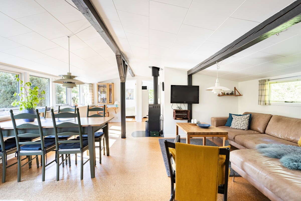 全新的度假屋,位於第一排,擁有自己的海灘,靠近穆斯霍爾姆灣(Musholmbugten),距離哥本哈根僅1小時車程。 房屋面積為50平方米,附屬建築面積為10平方米。 房子內有門廊、帶桑拿的浴室/廁所、臥室和一個帶壁室的大廚房/客廳。從客廳可以進入漂亮的大閣樓。房子有空調和壁爐。 附屬建有雙人床房間。 房屋和附屬建有木製露台相連,並有室外熱水淋浴。 房子內的臥室以及閣樓和壁室。