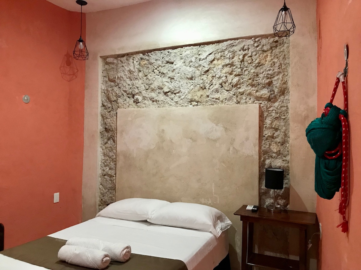 Disfruta con tu pareja la experiencia de pasar tu estancia en un cuarto privado con estacionamiento incluido, cuenta con baño, comedor, frigobar y 2 Aires Acondicionados. Es centrica, se encuentra a: -3 minutos caminando del Mercado Principal -10 min del Centro Historico de Campeche -15 min del malecon. En este lugar se encuentran los paraderos de las combis que te llevan a distintos poblados del Estado de Campeche.