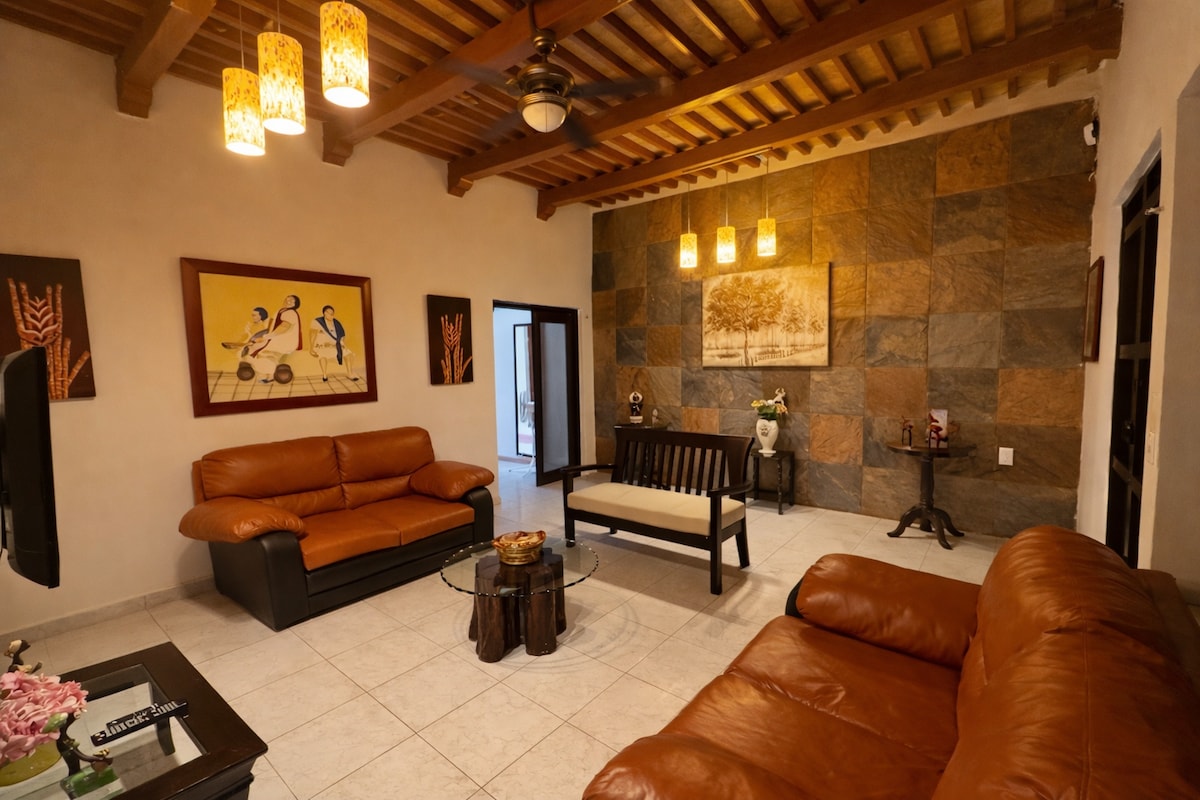 現代化的美麗殖民地房屋,完全空調,在這所房子裡面,你不會感到熱,配備了所有的設施,電視,設備齊全的廚房,游泳池,美麗的露臺,距離美麗的海濱大道和餐廳區域僅幾步之遙,非常適合團體或家庭入住,由於其環境,它也非常適合希望在游泳池後面的房間裡享有私密和浪漫的情侶。