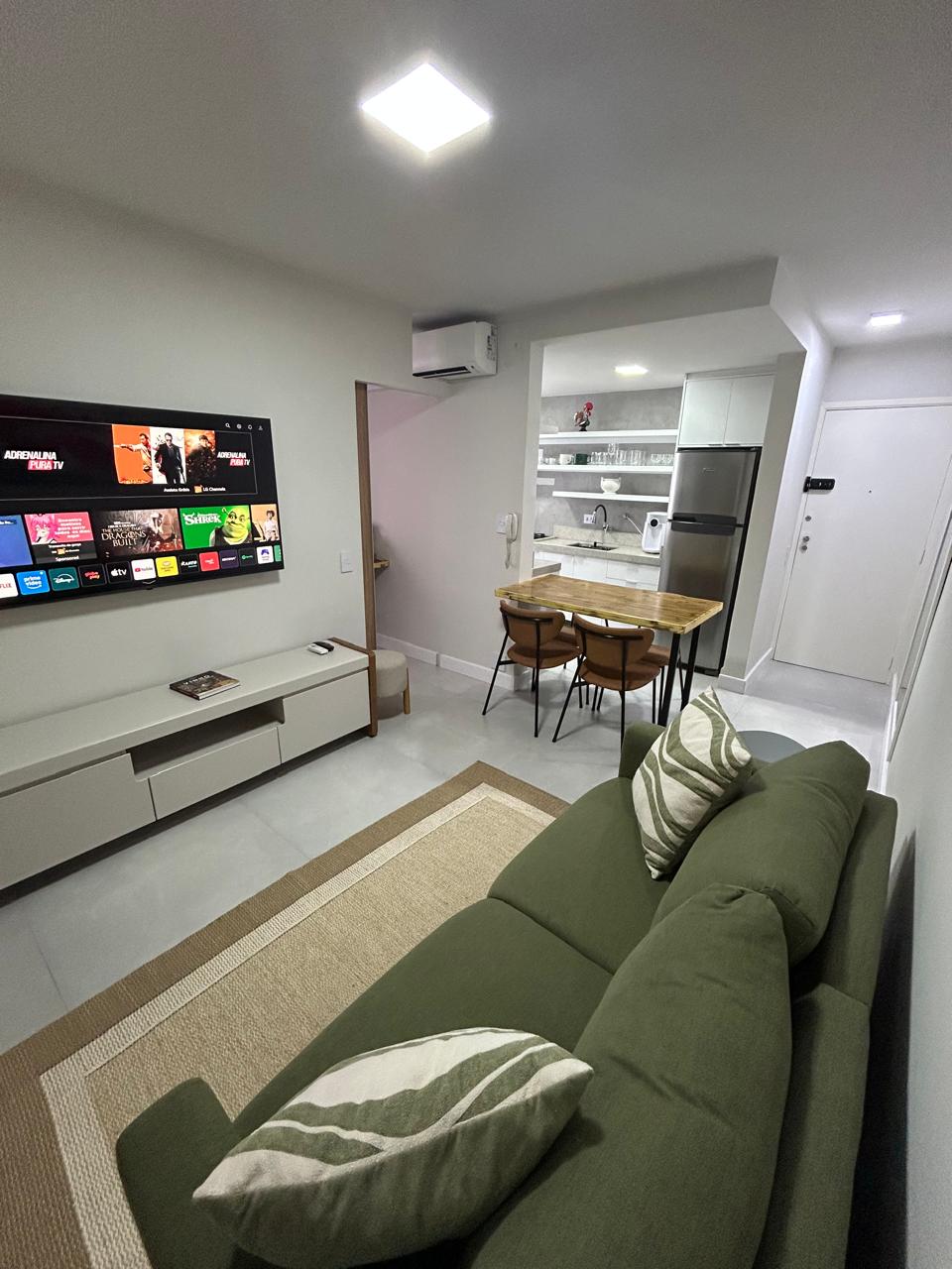 Alto padrão! Excelente localização! Completo: Wi-Fi, ar-cond, blackout, cozinha equipada (frigobar gde, cooktop, purificador de água, omeleteira, cafeteira, sanduicheira, microondas, etc); espaço p/ trabalho, roupa cama/banho, vaporizador p/ roupas, depósito, berço/cercado. Estacionamento 1 veículo (cabe cabine dupla). Acomoda 4 pessoas: 1 cama de casal; 1 sofá cama. Iluminado e arejado! Piscina, lavanderia c/ secadora, academia, sauna, espaço co-working, churrasqueira. Portaria presencial 24hs!