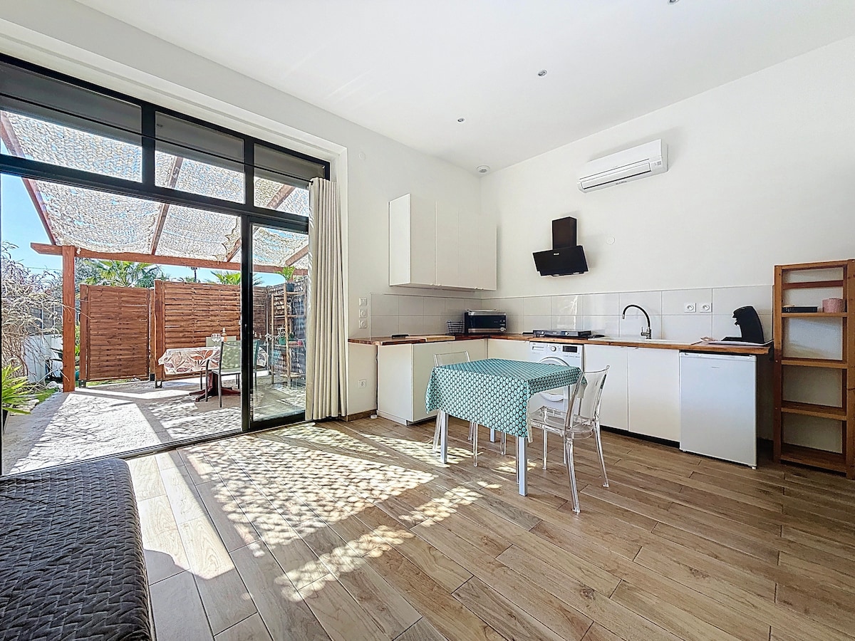 一樓公寓,距離海灘10公尺 這間面向南方的公寓面向42平方公尺,位於一樓,在舒適的環境中歡迎您。 空調設備齊全,一整天都享有美麗的自然光線。 您還可以享受60平方公尺的大型私人花園,非常適合您放鬆身心。 距離海灘僅10公尺,是水上度假的理想地點,無需開車