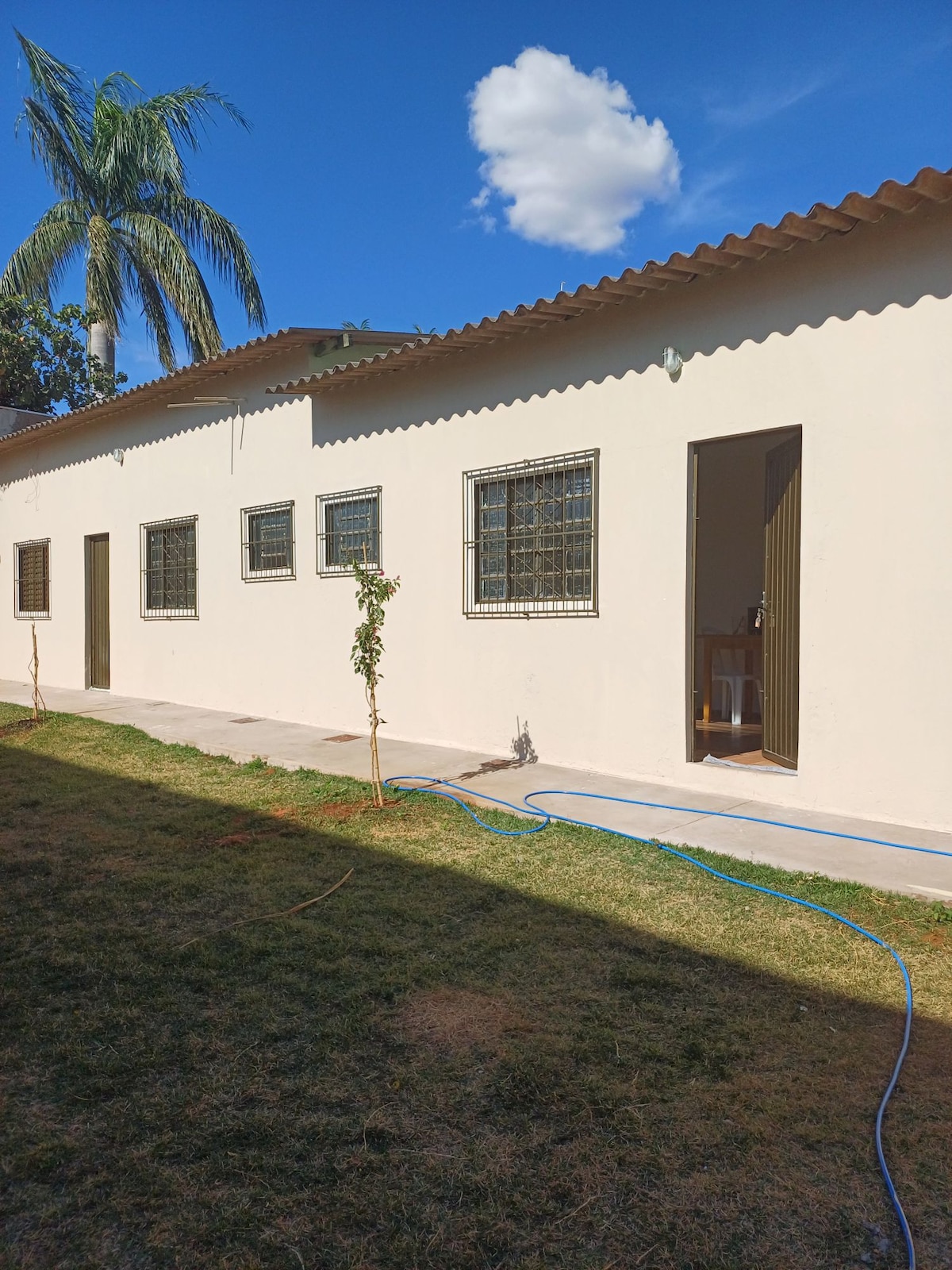 EDÍCULA INTEIRA. Anfitriões moram no mesmo quintal, na frente. A hospedagem é segura/tranquila. É pertinho do aeroporto, na saída de Bonito/Pantanal. Próximo do exército e do IFMS. É fácil ir ao centro! Não tem ar condicionado, mas há ventiladores. Possui concertina e câmeras, mas nenhuma filma a hospedagem. A casa do anfitrião é no mesmo quintal, mas a edícula fica nos fundos, reservada. NÃO ACEITA VISITAS e nem PET's. ATENÇÃO: Você precisa incluir na reserva todo mundo que for dormir.