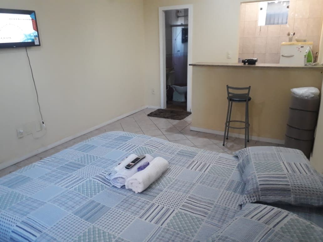 位於 Campos dos Goitacazes 中心的 30 平方公尺公寓,為您提供舒適的住宿體驗。提供一輛車的免費停車位、網路、智慧電視、18,000 btu/h窗式空調、迷你吧、雙口電磁爐、微波爐、2人基本餐具、2個鍋、吹風機、兩張單人床或一張雙人床。 靠近醫院、巴士站、超市和藥店。