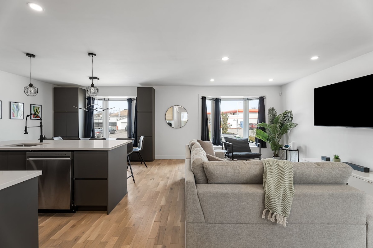 這間新翻修的平房位於市中心,靠近所有便利設施,距離17號高速公路僅幾分鐘路程。空間明亮、整潔,並以加拿大北部為設計靈感。您會發現溫馨安靜的氛圍,備有所有必需品(如毛巾、肥皂、咖啡、電視等)。在寧靜的後院的私人露臺上享受新鮮空氣,或在距離前門步行5分鐘的Fort Creek Conservation區的樹林中漫步。