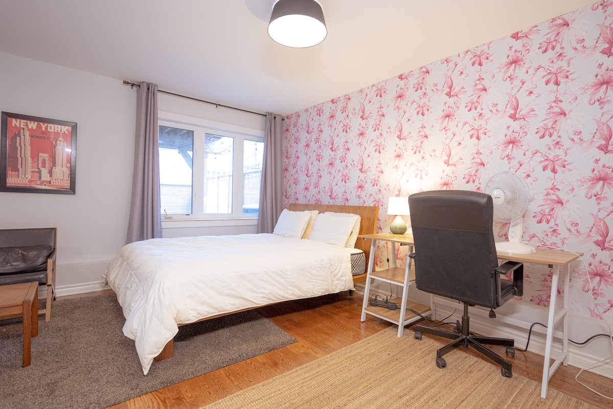 Discover a perfect getaway in the heart of Hintonburg, Ottawa. This private suite with a separate entrance features a full bathroom, a queen bed + floor mattress and a backyard with essential kitchenware, a smart TV and high-speed internet. Ideal for work with a desk and chair. You're steps away from grocery shops, trendy restaurants, bars, and public transport. Close to Parliament Hill, Dows lake, the Canal, City Center, Byward market and Little Italy.