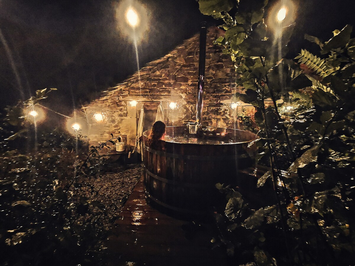 享受這間時尚度假木屋的寧靜、美景和舒適。 非常適合浪漫度假或與家人一起在大自然中放鬆身心。 我們在海拔650公尺,在炎熱的夏天,總是比山谷涼爽一點,微風吹拂,非常愉快。 夜晚,湖泊會涼爽下來,一夜好眠。 我們不需要空調。 歡迎狗狗入住,每次住宿€ 15。 冬天時有燃木暖爐。 我們以 €15 的價格提供一輛裝有木柴的手推車。