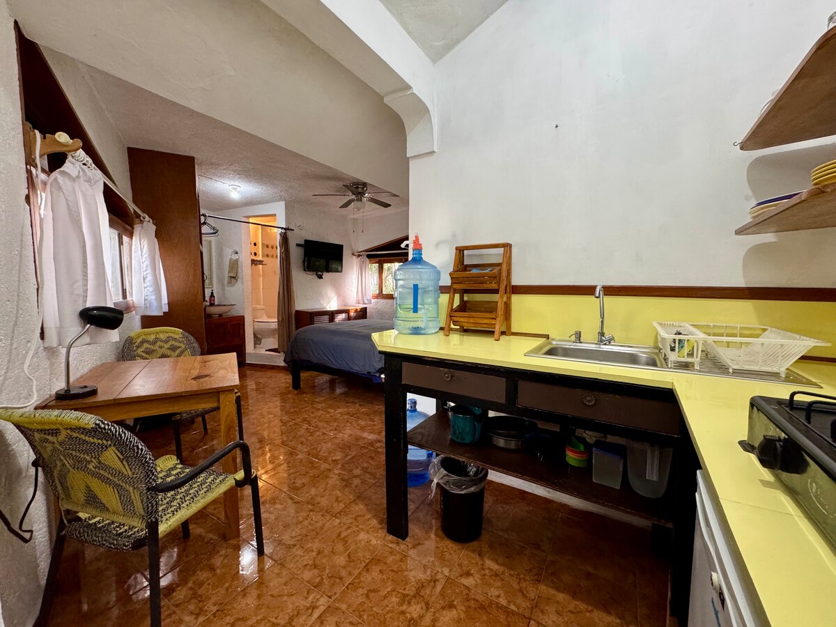 全套單間公寓。 這個美麗的空間由優秀的當地建築師設計。 一切都經過精心設計、精心策劃,並準備好度過美好的假期。 單間公寓有美麗的景色,四周是大自然。 它有一個陽臺,配有戶外桌子和雨傘。 房東可以引導您在坎昆及其周圍漫步的最佳地方。 我們會說英語。 我們距離坎昆機場不到10分鐘,距離海灘不到15分鐘! ! !
