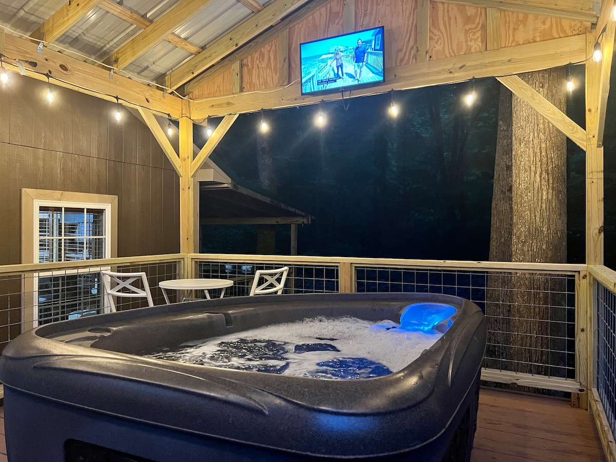 AVL Creek Side Cabin:按摩浴池、火坑、遊戲室!
