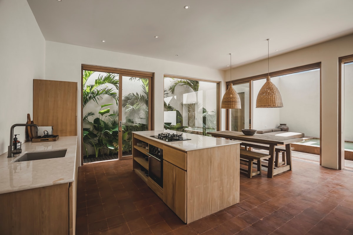 歡迎來到我們位於Canggu市中心的豪華別墅,距離海灘僅500公尺,步行即可抵達40多家咖啡廳和餐廳。 享受私人泳池、熱帶花園和每日清潔服務,享受無憂無慮的日子。 ✔臥室、客廳和廚房有空調 ✔ 私人泳池 ✔ 每日清潔 包括✔ 沙灘巾和浴巾 ✔ 新鮮飲用水機 ✔ 天窗浴缸 ✔ 熱帶風情臥室景觀 ✔ 設備齊全的廚房 ✔ 高速WiFi ✔ 智慧電視