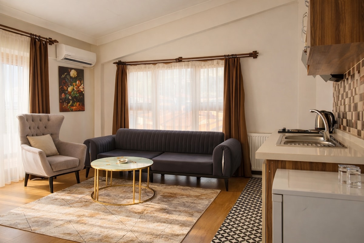 在這個位於市中心的安靜地方享受簡單舒適的住宿體驗。 新設計。入住公寓期間,您也可以享受水療體驗。 您可以在公寓中體驗家的舒適,配備洗衣機、洗碗機、冰箱、瓦斯爐、微波爐、水壺、吹風機。 距離大使館區的Atakule 2.9公里。 有公共交通站。 您的電動車可以充電,並有停車位。