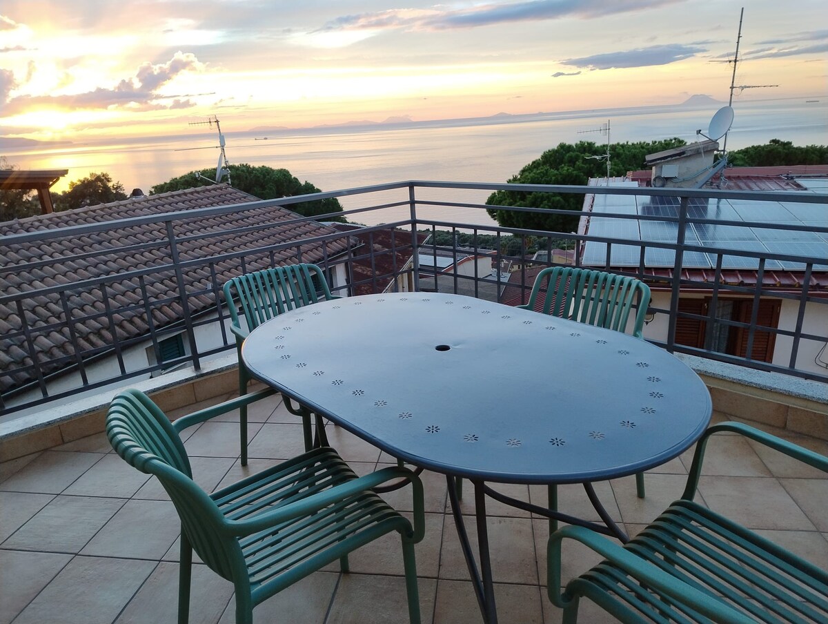 舒適的閣樓,有俯瞰海峽的大陽臺。 安靜的區域,四周綠意盎然,距離Coop超市、Casa della Cultura、每週市場和巴士站很近。 前面有停車位。步行15分鐘即可輕鬆到達市中心,開車5-10分鐘即可到達Monte Sant 'Elia和大海。 在絕對寧靜中度過假期的完美場所,享受當地美食和景觀的樂趣。