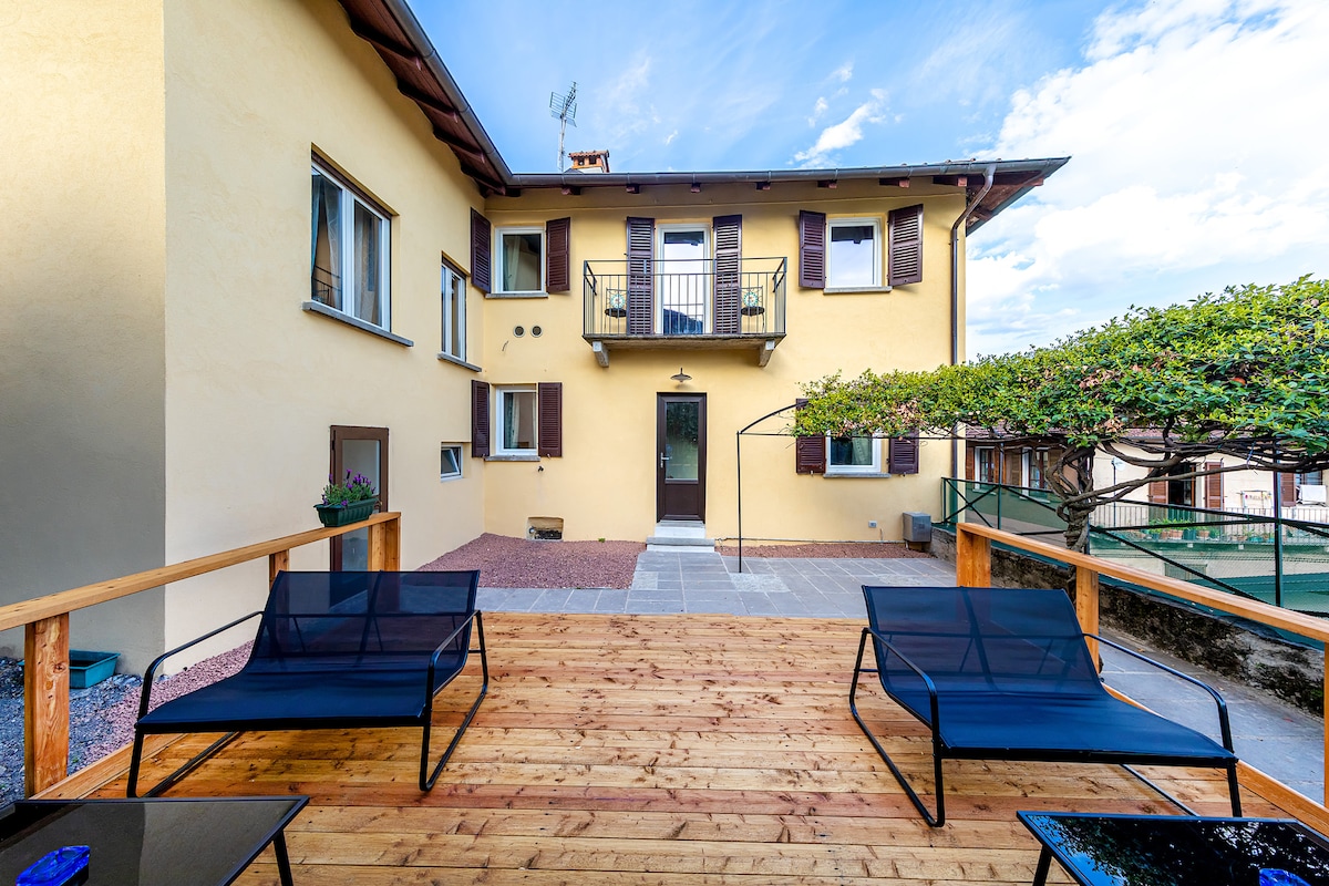A tiny and charming ground floor of a guesthouse, fully equipped, dating back to late ‘800, just restaured, in a garden of camellias, villa Anelli, with view on lake Maggiore. it is only reachable via feet. The romantic veranda, with glass walls, faces camellias blooming in springtime and winter, green during summer. It seems an english cottage, perfect for a couple with a son. The beds are a king one and eventually an extra bed.