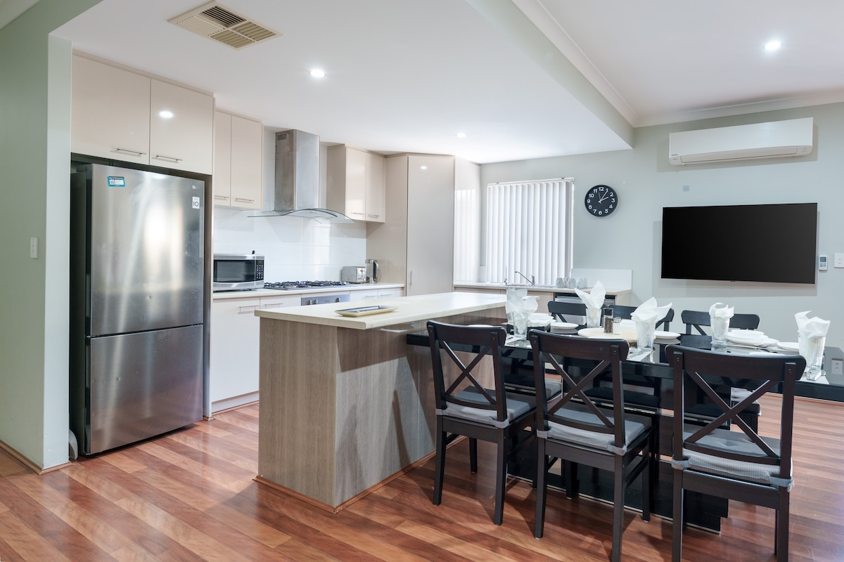 非常適合家庭、團體和商務差旅人士的Cannington房源。 寬敞的3間臥室、快速Wi-Fi、安全停車位、冷氣。 步行即可抵達Westfield Carousel,靠近Perth CBD、Crown、Optus Stadium。 現代化的設施、廚房、工作空間和兒童必需品-非常適合短期或長期住宿。 友善的房東、彈性入住、方便的公共交通。 享受購物、餐飲、活動和舒適。 立即預訂您的珀斯家外之家!
