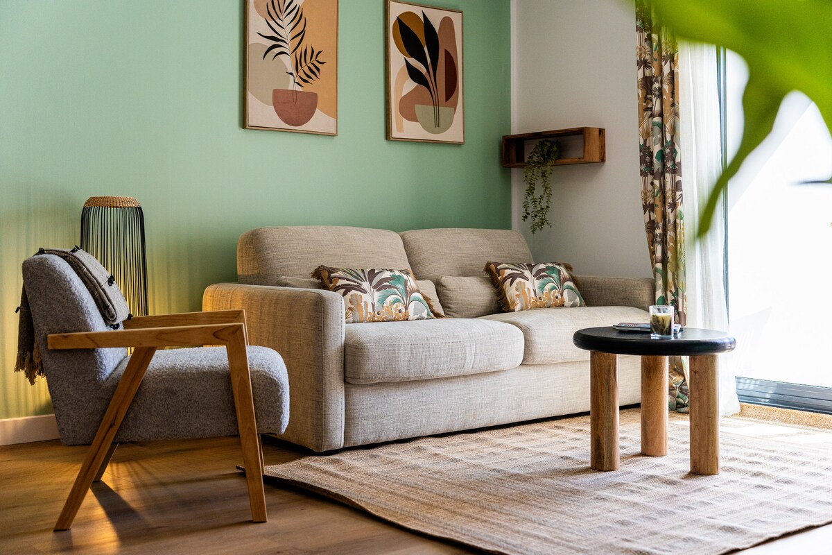 入住獨特的環境,專為休息和身心健康而設。 散步後,您可以在按摩浴缸或按摩椅上享受純粹的放鬆時光。 私人花園享有卓越的海景,非常適合冥想、閱讀或欣賞美麗的日落🌅 翻新的公寓,臥室配有標準雙人床和舒適的沙發床,結合現代化和舒適性,讓您享受放鬆和難忘的住宿體驗。 立即預訂難忘的體驗 🤩