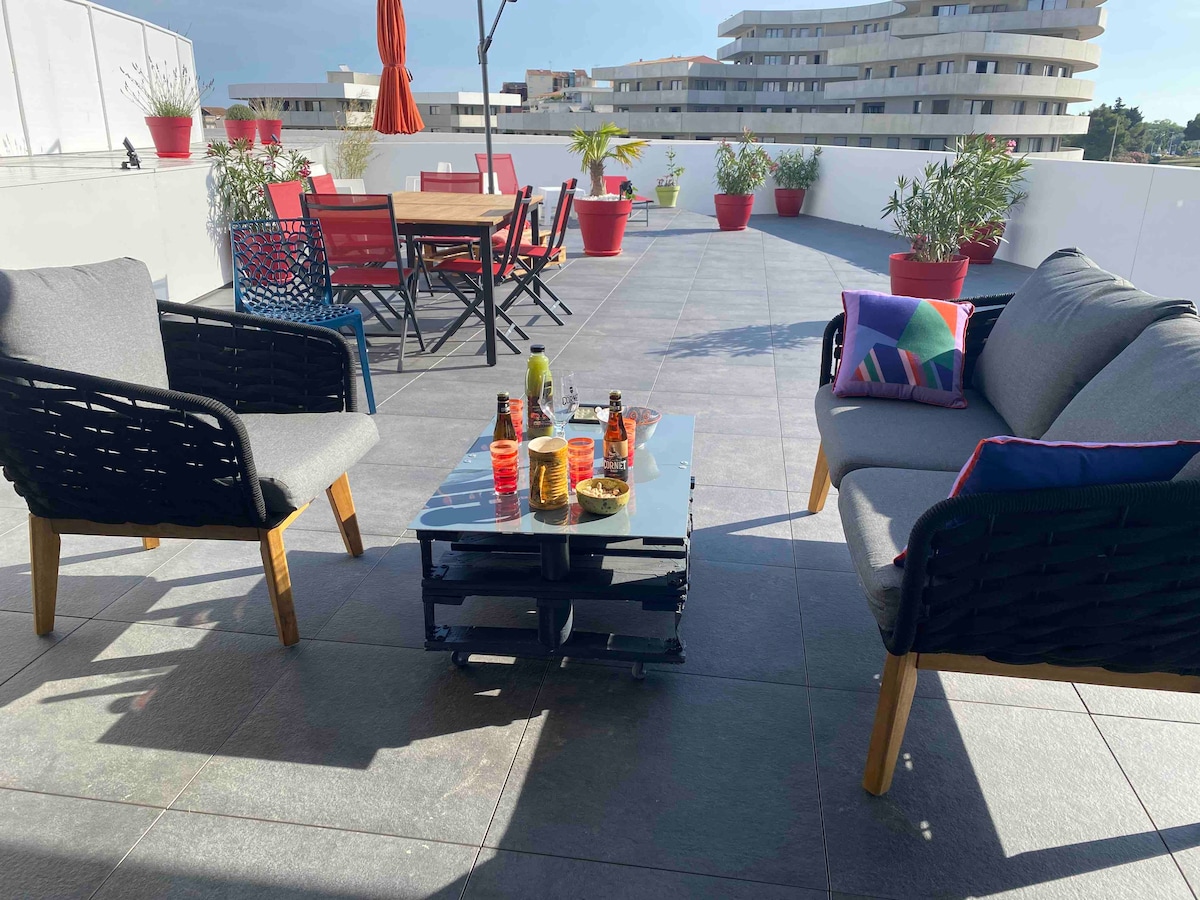 最多可容納 6 位房客(4 位成人和 2 位兒童)的華麗新公寓(88 平方公尺),位於 Cap d'Agde 中心,陽光明媚的露臺和 160 平方公尺的陽臺! 在大樓腳下,步行 10 分鐘即可抵達餐廳、酒吧、商店、會議中心和海灘。 國際網球場就在對面。 非常適合您在Cap d 'Agde度假、商務差旅、體育比賽和文化活動。