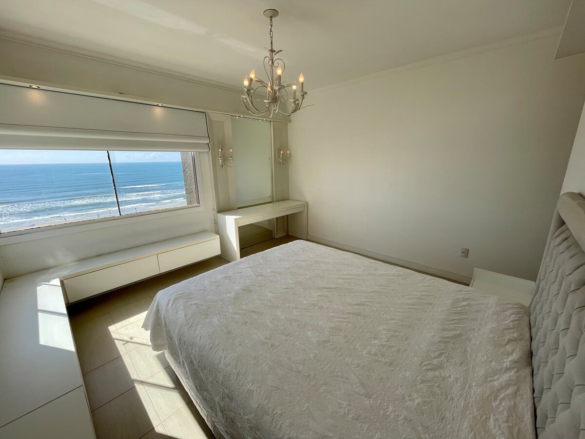 從公寓內的每個房間都享受和欣賞海景和日出景觀。 感受微風和海浪的聲音。 舒適的公寓,裝飾、照明和通風。 距離大海、燈塔廣場和巴薩尼廣場僅幾步之遙。距離市中心3個街區。 網路、Wi-Fi、Netflix、Globoplay、2臺智慧電視、吊扇、兩間臥室和客廳的空調、微波爐、電烤箱、洗衣機、電梯、盒子、露臺和遊泳池。