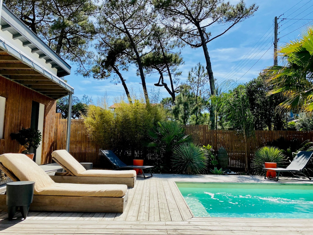 寬敞美麗的新別墅,可容納8人,位於Hossegor湖的底部,位於湖泊和海洋之間。 從4月到10月底的假期,您將享受它的寧靜、花園、溫水泳池、美麗的露臺、用餐區域和放鬆部分。 靠近湖泊和海洋海灘,是完美的出租屋。 距離湖泊50米,距離Océan ( Plage des Estagnots ) 300米。 寬敞明亮的客廳,可俯瞰花園和泳池