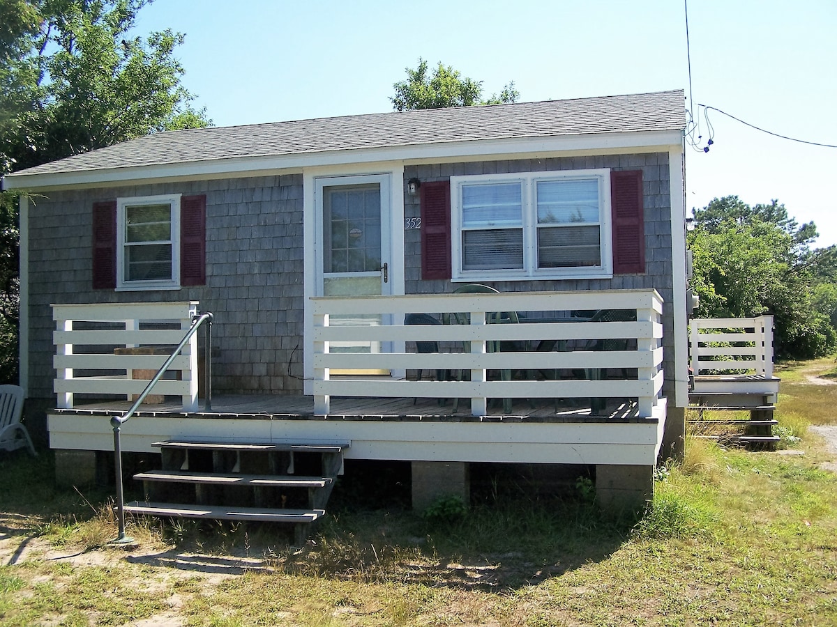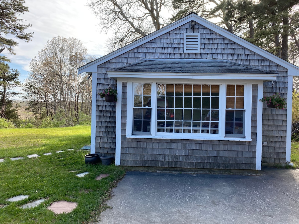在迷人的私人科德角小屋中享受情侶/家庭樂趣,在門廊、露臺和戶外淋浴間進行屏蔽( 11月/12月/1月成為薑餅小屋)。 室內:開放式起居空間,配有大雙人牀和休息空間。 梯子通往短高度的閣樓,配有2張單人牀。 全功能浴室,配有室內淋浴間。 小廚房-請參閱下方描述。 我們提供茶、當地咖啡、香料、調味料、瓦斯烤架、冰箱、沙灘毛巾和椅子。 最多可睡8人,也可以在Airbnb上租用我們的上層房間。