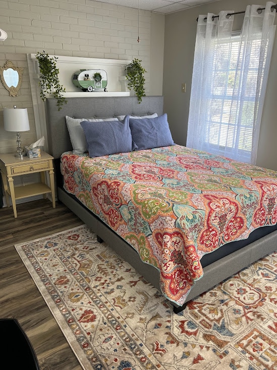 The Barrister's Loft sets the standard for a luxury stay in downtown Goldsboro with its mid-century decor and cozy accommodations. Each bedroom is furnished with a queen-sized bed and offers its own bathroom and walk-in closet. The spacious open-concept living area and kitchen are the perfect gathering place for your group, and a desk space offers the ideal spot to work from your home-away-from-home. Located within walking distance from restaurants, shopping and bars.