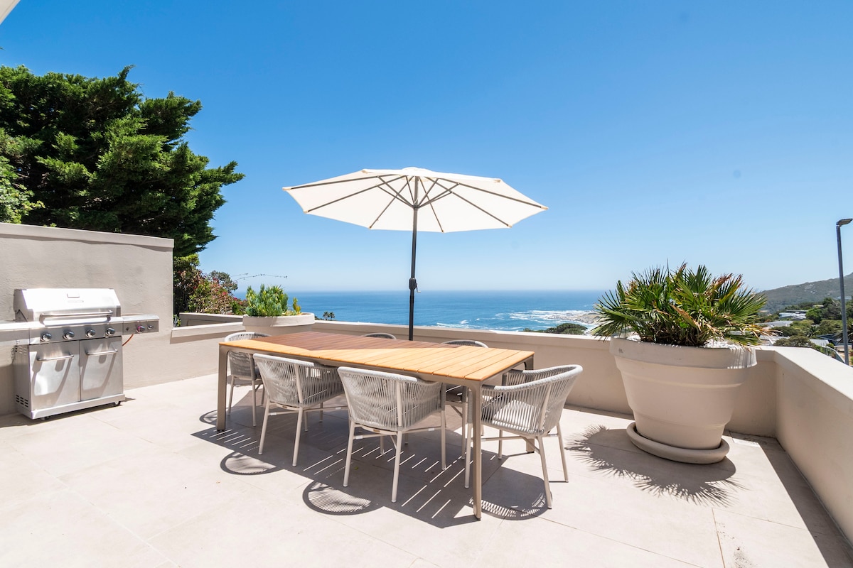 Simply spectacular, newly renovated, spacious home with its own pool offers breathtaking ocean & mountain views. Less than 100 meters to the beach and a short scenic stroll to the famous Camps Bay Promenade with its trendy restaurants & cafes. Comfortably accommodates 10 people with 4 full bathrooms. The home has a new inverter / battery back-up, so functions effectively during any electricity outages (TV's, WiFi, lights, electrical sockets etc). Secure parking is also available