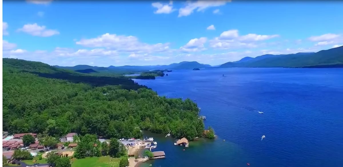 這間寬敞的2臥室2浴室套房非常適合家庭或團體一起旅行,最多可容納9人,配有4張雙人床和一張日式床墊,這在喬治湖(Lake George)很罕見。 享受全套廚房、舒適的起居區和溫馨的Adirondack魅力。 位於The Sundowner,距離泳池、按摩浴缸、沙灘和免費皮艇、槳板、獨木舟和划船僅幾步之遙,還有步行即可抵達的村莊景點。 這是一個充滿活力的中心房源,非常適合計劃外出享受湖泊和城鎮的房客。