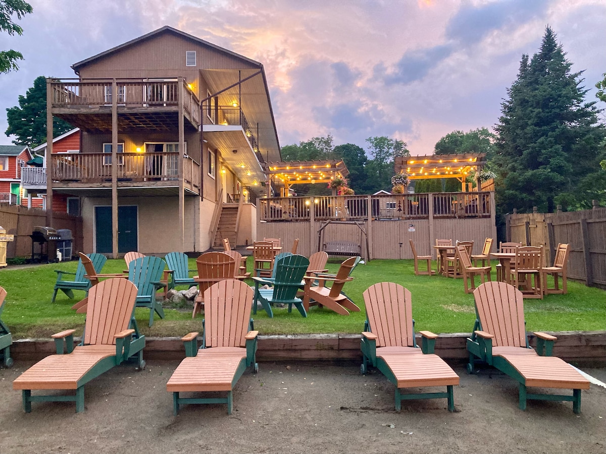 Indulge in our Adirondack-inspired open-concept King–King studio, a standalone cabin designed for comfort and character. This spacious studio features two king beds in one open living area, plus a futon, cozy fireplace, equipped kitchen, and in-unit jacuzzi. Enjoy limited lake views and a private deck with BBQ grill. Guests also have access to the pool, hot tub, beach, fire pit, and free kayaks, canoe, and paddle boards. Just a 5-minute walk to the village.