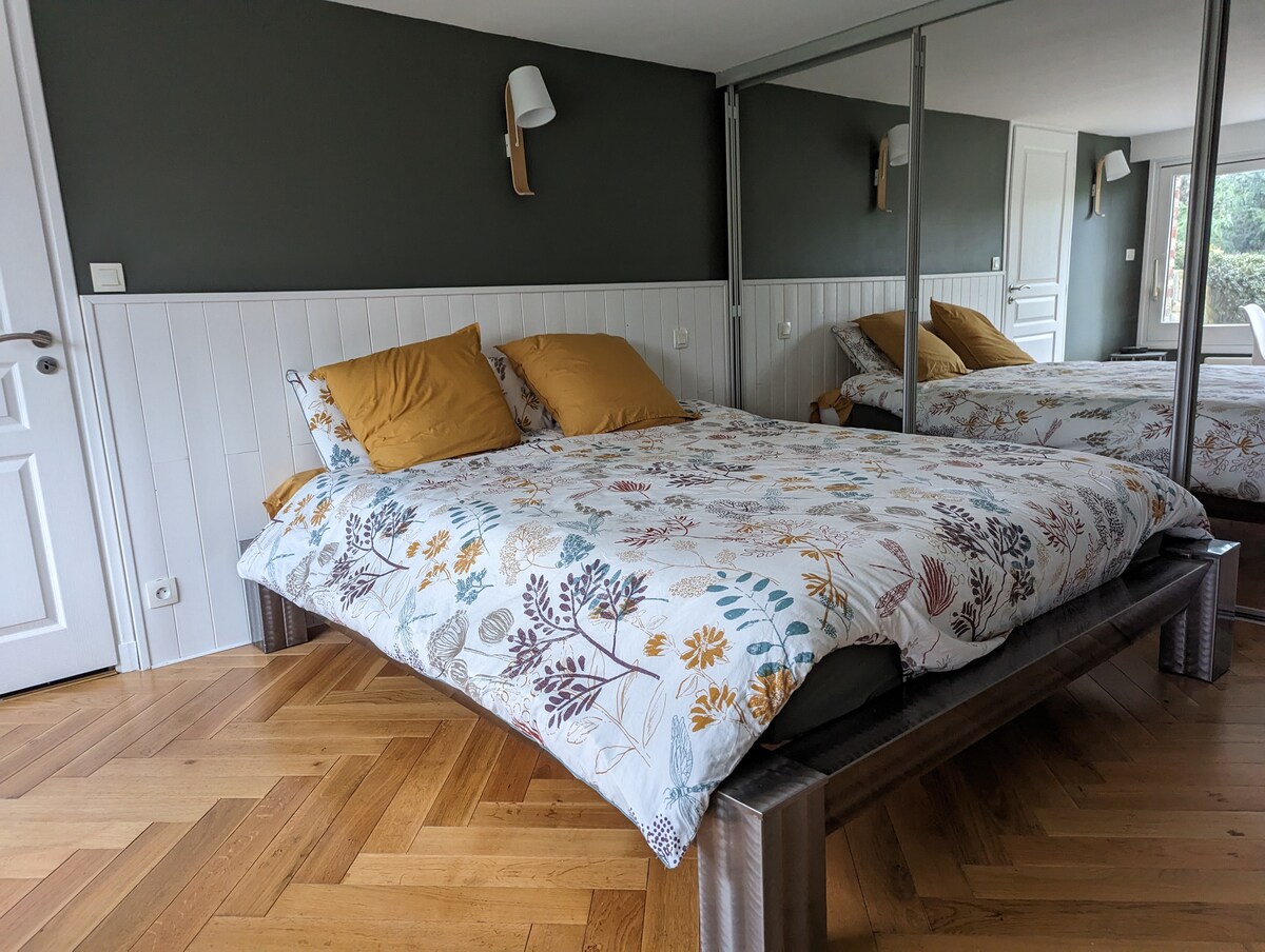 Détendez-vous dans ce logement calme et élégant. Accès privatif avec digicode Le logement se compose comme suit : Accès par une terrasse de 15 m2 sans vis à vis en bordure de plaine. Un grand rez de Chaussée d’environ 25 m2 avec une cuisine équipée et un espace salon Un chambre de 15 m2 avec son coin bureau si besoin. Matelas de la marque Emma , King-size (160x200) . Les draps sont fournis. La salle de bain Équipé d’une grande douche
