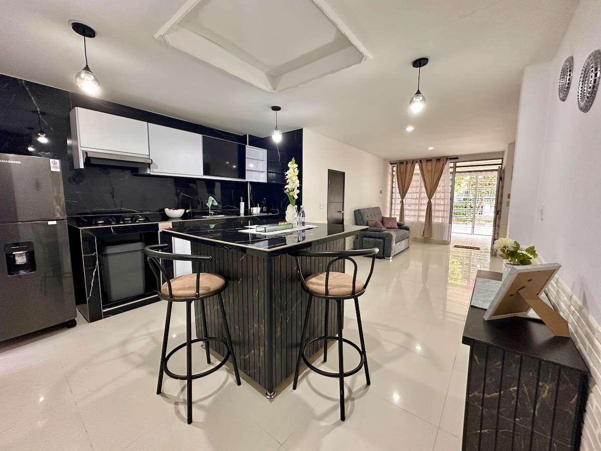 入住這間位於市中心的新公寓,提供5星級體驗。 🏝️ -最多4位房客,配有1張雙人牀和2張單人牀 (或4張單人牀) 最佳位置: -距離機場5分鐘 -靠近兩家商場。 -距離歷史中心僅10分鐘路程 -前往Tatacoa沙漠。 -著名的聖佩德羅集市也只需10分鐘。 俱樂部會所: -市內最佳 -包括停車位 -遊泳池 -可欣賞城市景觀的露臺 -烤肉 -健身房
