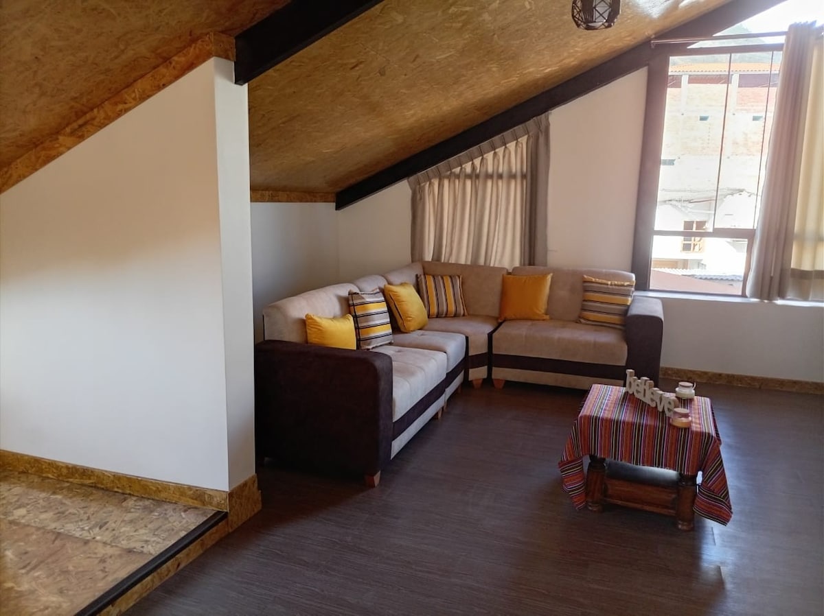 Hospedaje Los Capulies內的公寓,可俯瞰洛斯安第斯山脈。 它有兩間臥室:一間有雙人牀和一張單人牀的房間,另一間有小木屋。 它有小廚房和家具齊全的客廳。