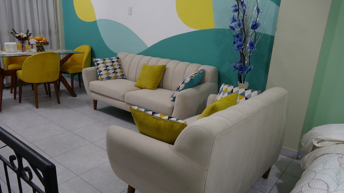 Departamento en el corazón de Carhuaz con vista panorámica a toda la ciudad, incluido el nevado Huascaran. Perfecto para alojamiento familiar o grupo de amigos. Incluye áreas comunes, juegos de mesa, zonas de relajamiento y más.