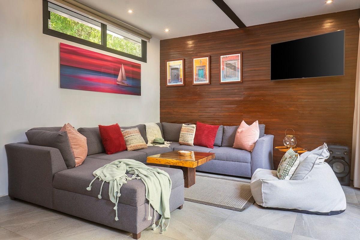 步行3分鐘即可抵達圖盧姆市中心 開車 5 分鐘即可抵達圖盧姆海灘 距離圖盧姆遺址(Tulum Ruins) 5分鐘車程 入住這間設計精美的現代單間公寓,位於圖盧姆市中心附近,室內和室外生活無縫融合。這間安靜的度假屋配備光纖WiFi、開放式臥室、時尚的現代廚房、寬敞的起居區和豪華的泳池,距離最好的餐廳和酒吧也只有幾分鐘的路程。陽臺旁邊是寧靜的瀑布。 與我們一起體驗圖盧姆,並在下方了解更多!