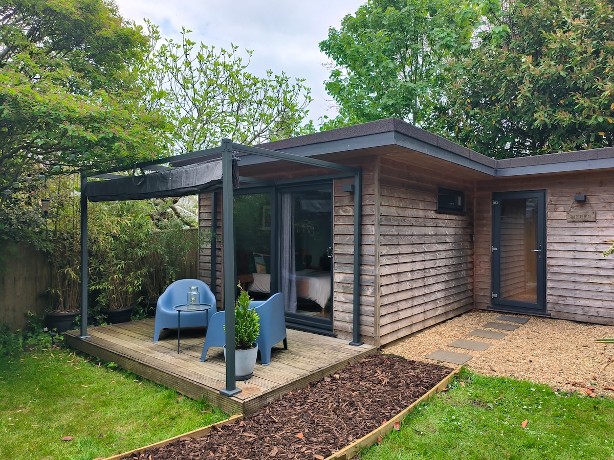 *20% off 2nights or more* Modern purpose built self contained chalet, next to the house but with its own private entrance and private pergola area with canvas sides complete with cosy seating & lighting plus hot tub! Situated in East Cowes. The house was part of the Osborne estate so we are situated right next to Osborne House, also a 2 minute drive or 20 minute walk from East Cowes Red Funnel. We are also on a main bus route to Newport or Ryde. There is private access & your own parking space.