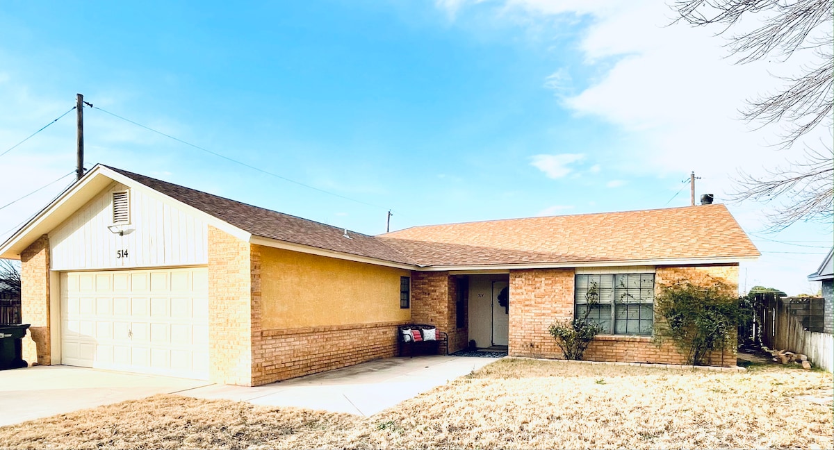 寬敞的開放式樓層,有4間臥室和2間浴室,距離285號公路一個街區。 位於市中心,距離雜貨店、CVS、餐廳和加油站1/2個街區。這個房源充滿了我定制的藝術品,供出售。我提供各種設備與服務,供全家享用。寬敞的圍欄後院,配有丙烷烤架,適合喜歡烤肉的人。有寬敞的空間供孩子們玩耍。佩科斯河(Pecos River)就在幾個街區外,您可以在那裡享受海灘或水上公園。
