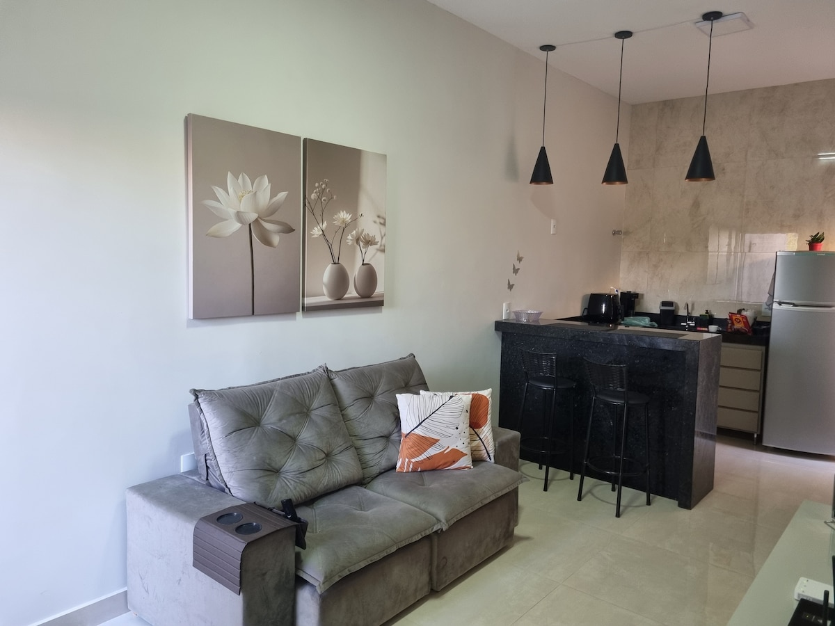 Espaço Alternativo 位於米納斯吉拉斯州卡爾穆杜里奧克拉魯 (Carmo do Rio Claro/MG),最多可容納 2 人,非常適合想要溫馨住所的人,靠近一切設施,讓您有家的感覺! 配有Wi-Fi、1間配有雙人床和衣櫃的臥室、1間配有沙發和雙人沙發床的小客廳、1間浴室和1間配有電咖啡機、三明治機、微波爐、爐子、冰箱和其他用具的小廚房。此外,它還有外部監控攝像頭,並且可以輕鬆停在門口。