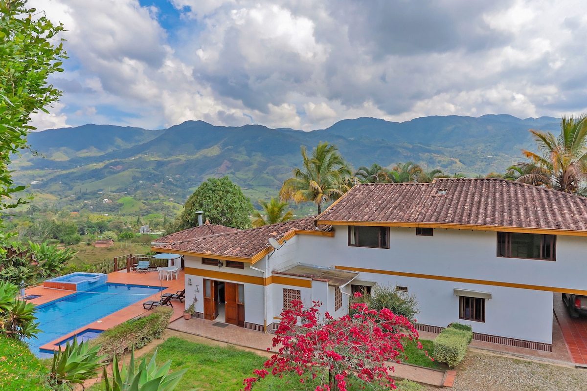 ☀️ Cantares Finca:Medellín附近的山區天堂⛰️逃到天堂! Cantares Finca距離麥德林(28c-82f)僅1.3小時車程,提供極致的放鬆和巨大的山景。 享受我們的鹽水無邊際泳池、22 人的巨型按摩浴缸。 所有房間都有空調和舒適的加大雙人床。 設有桑拿、蒸氣浴和撞球。 如果幸運,您每天都會看到樹懶、猴子、老鷹和蜂鳥! 附近的旅遊:可可、瀑布和騎馬。 預訂您安靜奢華的山區度假勝地!