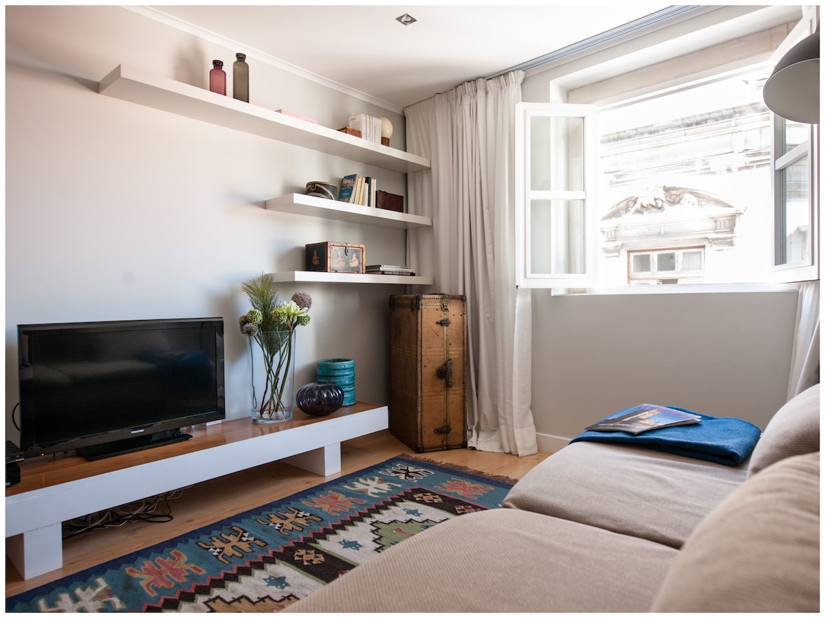 Maravilhosamente localizado no coração de Lisboa, em plena Rua Garrett, no cosmopolita bairro do Chiado, o apartamento fica situado no 5º e último piso, tendo uma varanda com uma magnífica vista para o Castelo de São Jorge e para o rio Tejo. Acorde a ouvir os artistas de rua a cantar, tome o pequeno almoço na Brasileira - onde Fernando Pessoa escreveu a mais bela poesia portuguesa -, e aproveite para comprar um livro na Bertrand, a mais antiga livraria do mundo, tudo isto, mesmo junto ao ...